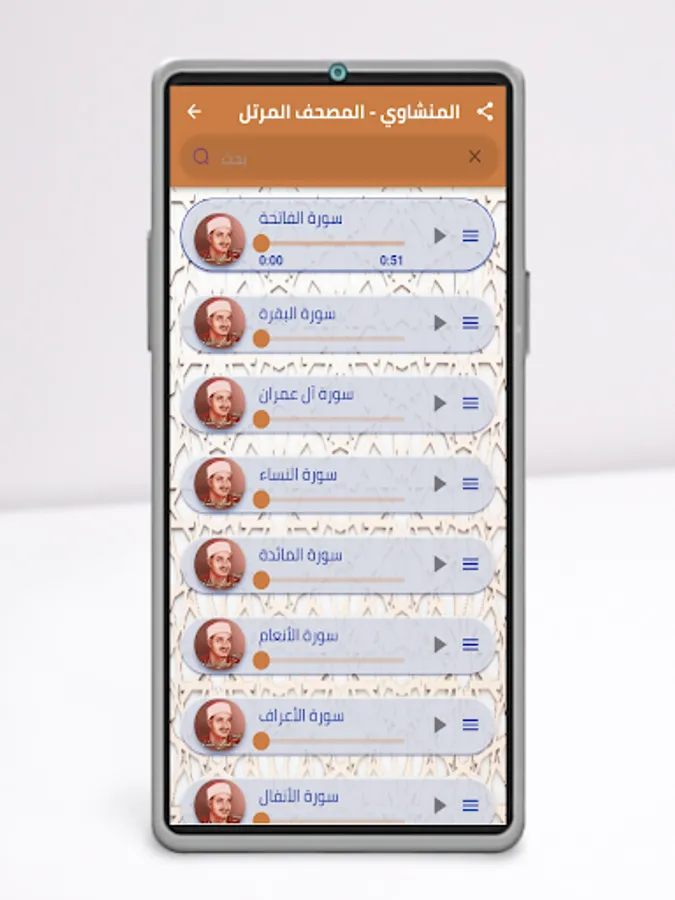 The Sheikh Al-Minshawi program for Android phones allows listening to Sheikh Muhammad Al-Minshawi Tajweed - as it contains the entire recitation of the Qur’an with the voice of Sheikh Al-Minshawi.