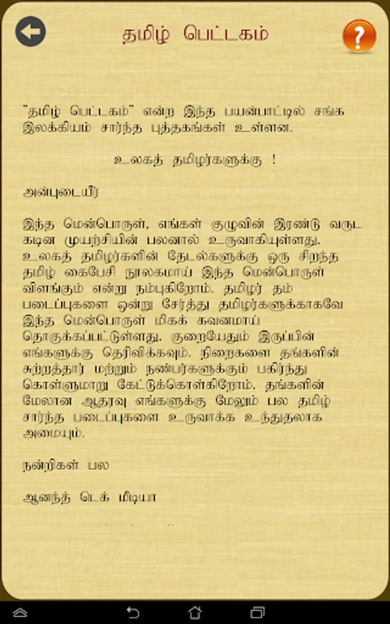 ThamizhPettagam SangaIlakkiyam - "Thamizh Pettagam SangaIlakkiyam" is a complete library that contains Tamil Books. We request all Thamizh(Tamil) people and Thamizh (Tamil) Lovers across the Globe to support this initiative.