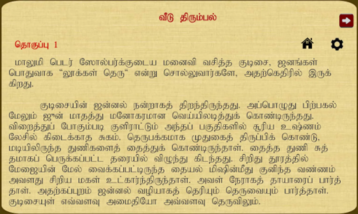 Veedu Thirumbal - Written by Cho.Virudhachalam in the pseudonym of "PuthamaiPitthan".He wrote so many short stories. He is considered a pioneer of modern Tamil literature. Sharp satire and social criticism, progressive, with the literary taste of his works, he showed his uniqueness.