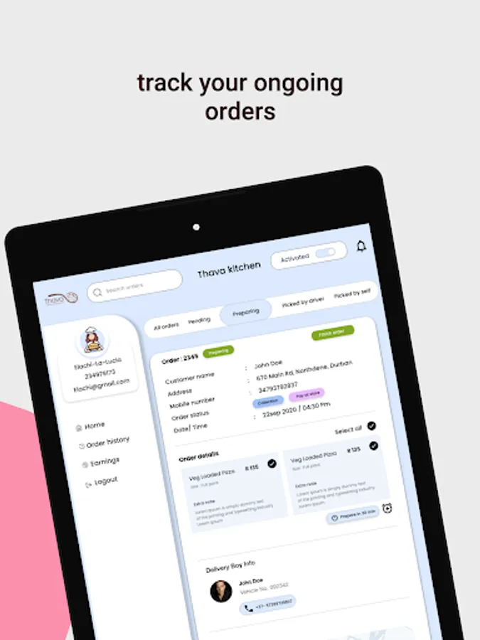 This app allows you to manage your restaurant on Thava Kitchen Food Orders in a single, centralized place. Get notified of orders in real time, accept orders and notify drivers of orders pending. Whilst doing this the customer is appraised of all the happenings on their device