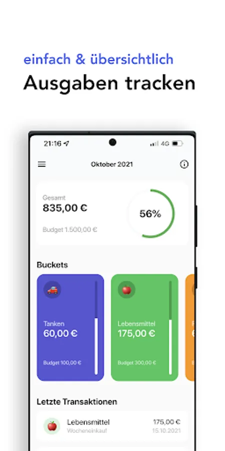 At CostWise, you can create multiple spaces and decide whether you want to share them alone or with others. You set a monthly budget for each space. You then create individual buckets (e.g. for groceries, rent, savings) and distribute your total budget among them. And then it can start. Add expenses quickly and easily with just a few taps and track how you spend your money throughout the month.