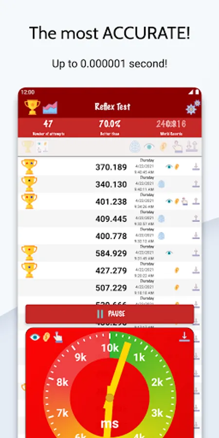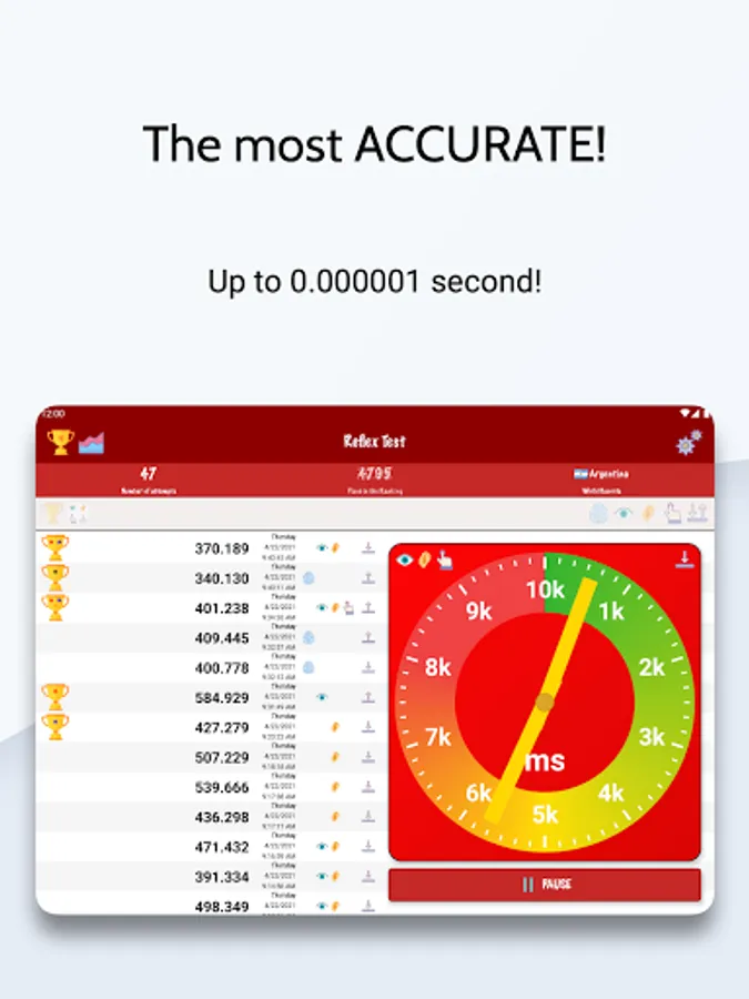 The most ACCURATE reflex test you can find in Google Play, accuracy up to 0.000001 second!