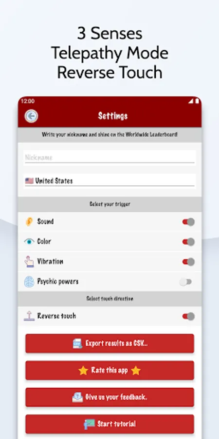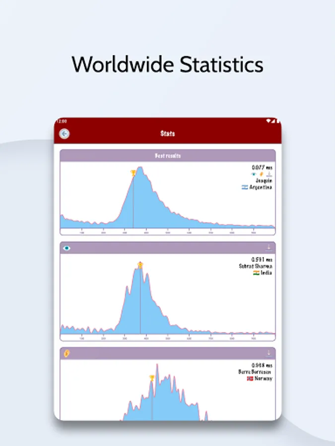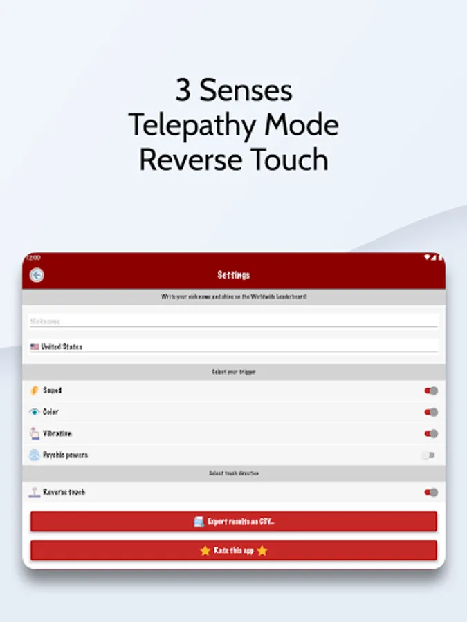 The red box is your target, tap as fast as you can and compete with others on the WORLDWIDE LEADERBOARD. Measure your response to change of the color or sound and as a special BONUS check your Psychic Power with TELEPATHY test. Just for fun 😃!