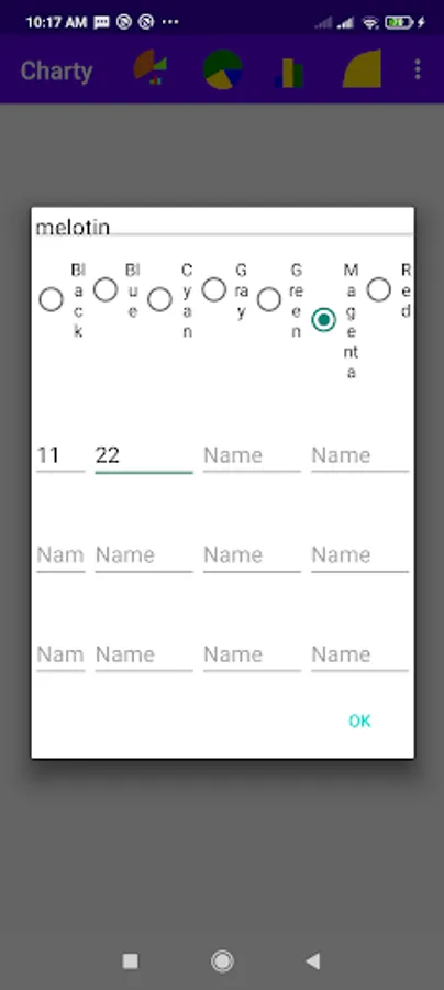 Charty is a graph-creating app you can use to create Pie Chart, Bar Chart, and Line Chart in three easy steps. The Charts can be saved stored and shared with anyone. Charts can also be deleted. No registration, no, visit the site, etc. Once you have downloaded the app. you can create as many charts as you wish. The app comes with built-in help.
