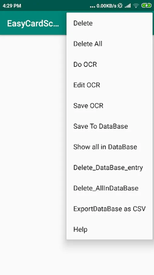EasyCardScan can scan,store,extract contact details, email it , save card details to database, and even add to your phone contacts. You delete all or any contact from database.You can transfer all the contacts to a laptop or PC.
