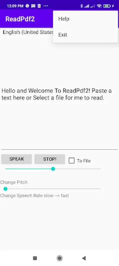 ReadPdfFree2 is a Text to Voice Converter app that will read aloud any text file on your device. It can read out from a PDF file with the help of a built in text extractor. No need to type. Read aloud text or pdf files on your device. File selector enables you to select the file to read. Language selector enables language selection. Supports reading large pdf files by splitting the tts files.