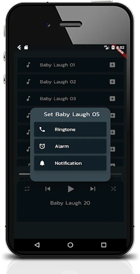 - Able to set baby laughter as a Ringtone Notification and Alarm sound.