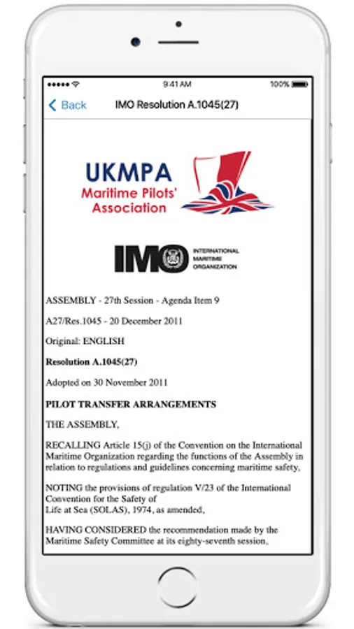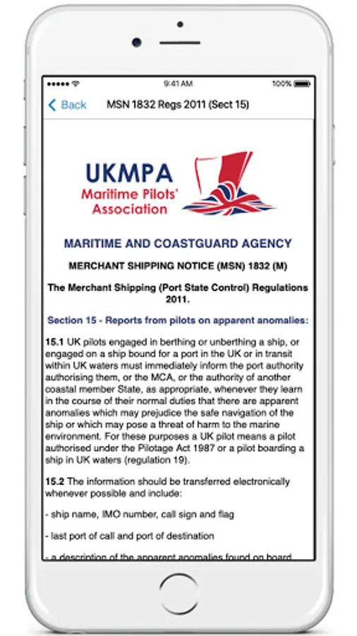 The United Kingdom Maritime Pilot's Association (UKMPA) Mobile Application (App) is an information-sharing tool to help improve maritime safety.