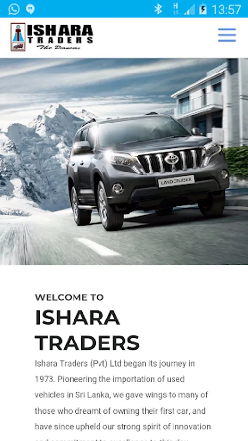 Ishara Traders (Pvt) Ltd began its journey in 1973. Pioneering the importation of used vehicles in Sri Lanka, we gave wings to many of those who dreamt of owning their first car, and have since upheld our strong spirit of innovation and commitment to excellence to this day. Today, Ishara Traders (Pvt) Ltd is a household name and the leading importer of used vehicles in Sri Lanka.