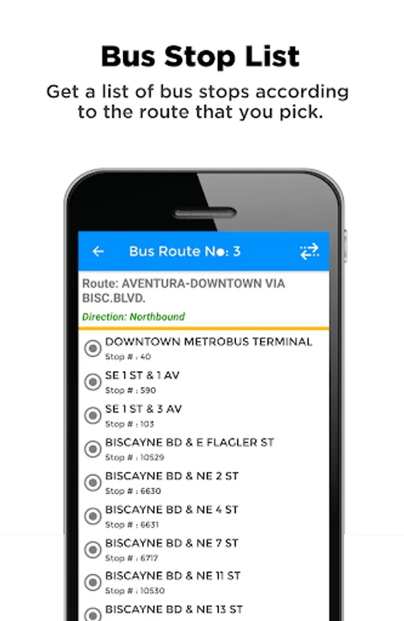 This app is specially designed for all bus users with the most simplicity and efficiency approach and it is very easy to use. It will bring you very accurate distance away of the Miami bus to your bus stop where you can be prepared at your home, work place or any other places. Get real time Miami bus info about when the next bus will arrive.