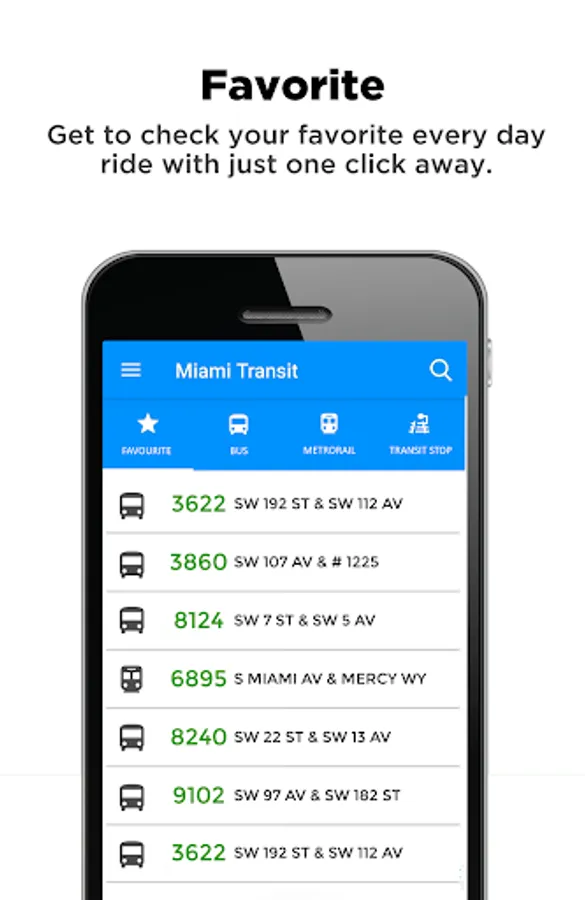 - You are able to search your Miami bus, MetroRail and MetroMover in any routes or stops, just key in your bus code number.