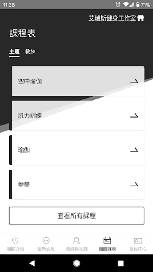 在「Eros Fitness 」你有瑜珈、空中瑜珈、芭蕾雕塑、互動拳擊、肌力訓練等多樣化課程做選擇。