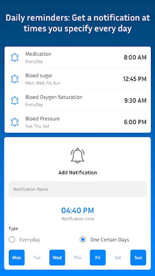 - Daily reminders to get a notification at times you specify every day