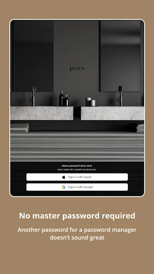 * Serious security: Pairs protects your data with super strong AES 256-bit encryption