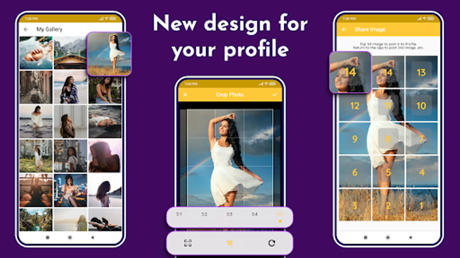 Now you can use Grid Maker image splitter to cut, split and share your pictures onto your profile. Unique photo split app. Grid maker app will help you Crop, split and share images.