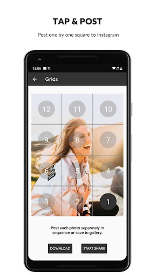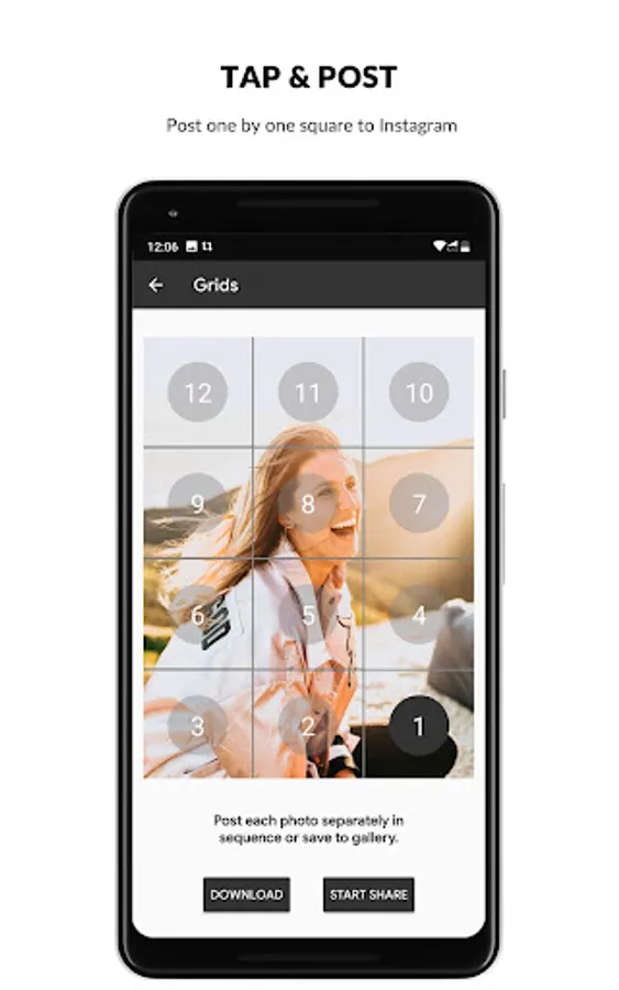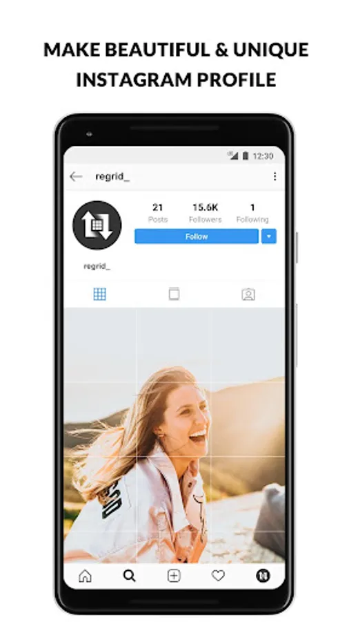 Grid Maker for Instagram Profile - Create giant square for instagram profile and impress your friends and profile visitors. You can choose grids from 3x1, 3x2, 3x3 and 3x4. So you can split your photos into 3 square, 6 square, 9 square and 12 square. Regrid is the best and fast photo grid app for instagram.