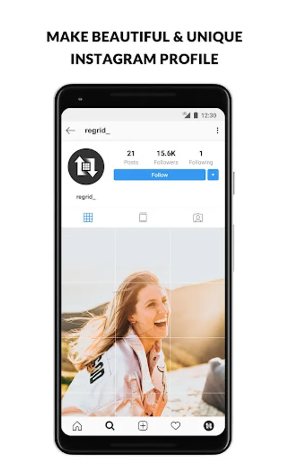 Regrid is instagram tools app which allows Repost, Grid Maker (Giant Square), Panorama Crop and Square Photo Maker. Regrid have a best features like repost for instagram which allows you to repost your favourite Instagram photos and videos from friends and people you follow. Below we highlights some best features of Regrid app.
