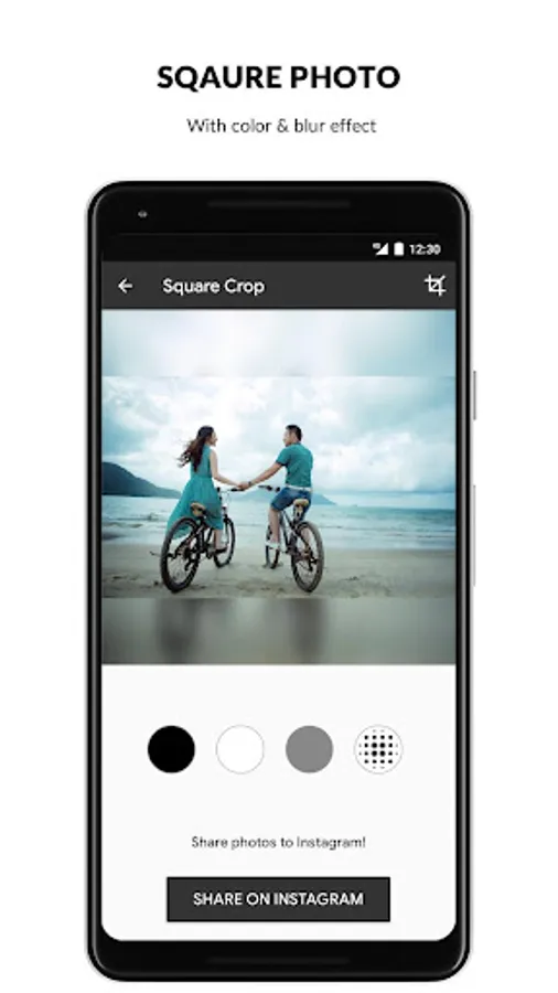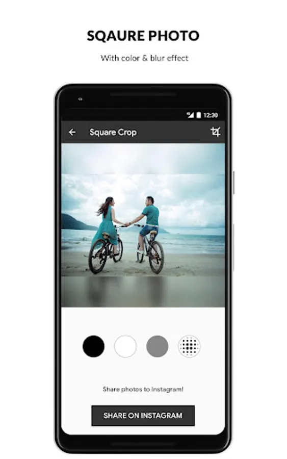 Square Photo - Regrid is fast app to make any photo in square fit. You can set color & blur effect as a background. It's a best No Crop photo for Instagram.