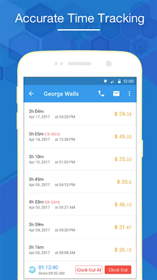 Hours Keeper allows to record your daily working hours for each client, including your overtime and break time. After earnings been calculated, you can generate PDF invoices to sent to your clients and track all the billings and the payments. And, Produced by Polycents.
