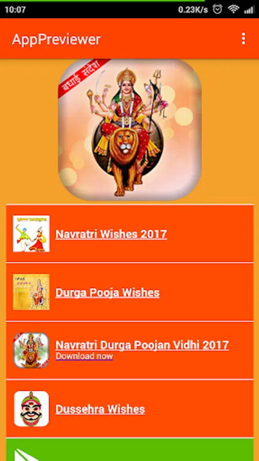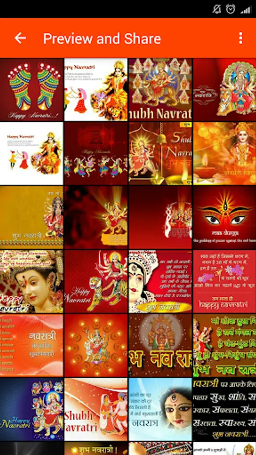In this application we are providing all kinds of navratri greeting in hindi, Special wishes for Religious dura poojan Festivals and other General wishes. In each category you will find the huge range of images with quotes and you can also share them.