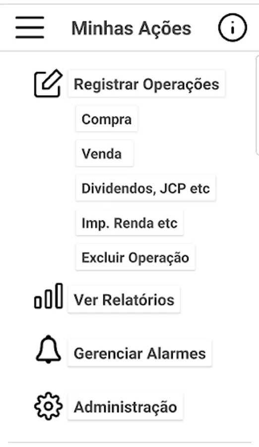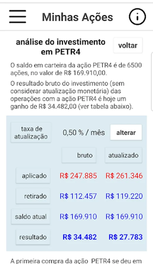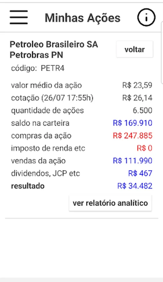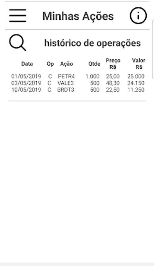 With MY ACTIONS you can easily track your stock investments. You only need to feed the system with the operations you make on the Stock Exchange. MY ACTIONS takes care of the rest, does all the math and presents smart reports so you know your stock portfolio. The application operates with shares on the São Paulo Stock Exchange (B3). Investments in Bitcoins (BTCBRL code) can also be registered.