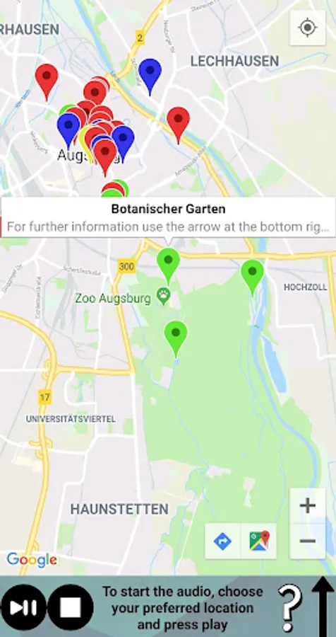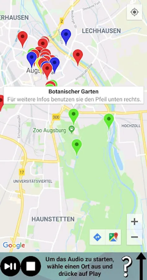 The app has been designed and devoloped by a group of 15 students over the course of roughly a year. The„Gymnasium bei St. Stephan“ P-Seminar made it its mission to come up with an audioguide for Augsburg. What makes our audioguide special, you ask? Why would you download this app, and not one of dozens of others? Well, we are not professionals – we are young people of 17 and 18 years of age. We actually know the city we´ve lived in for almost two decades. We know the places to be – and those not to be. So go ahead, give it a try! Whether you are a tourist curious to discover sites not flooded by people or a local yourself, eager to find your new favourite hang-out spot – I promise you will not be disappointed.