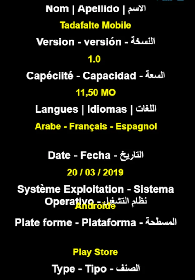 the present application is develop with three different languages namely (French, Spanish and Arabic) given the existence of the Dafaliens (Dafalienne) mainly in European countries such as Spain and France