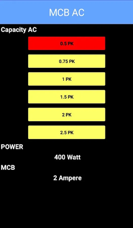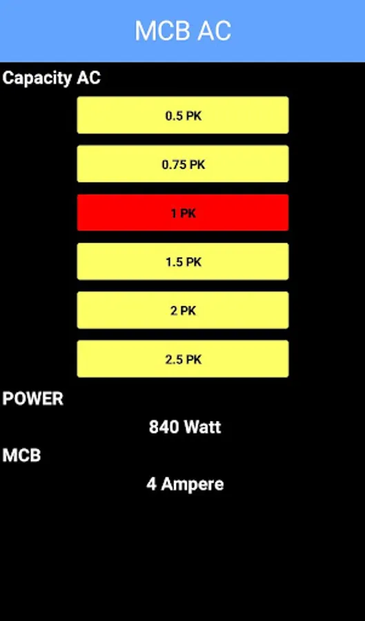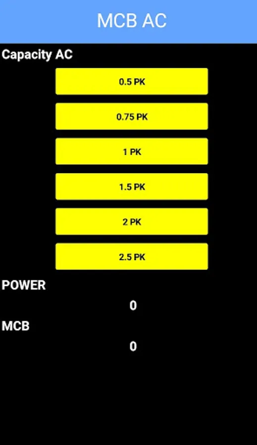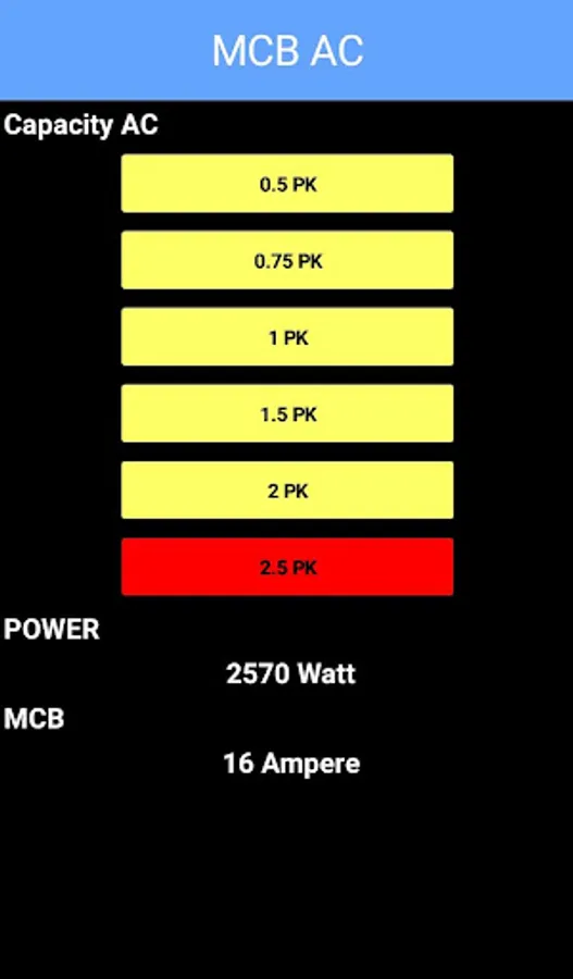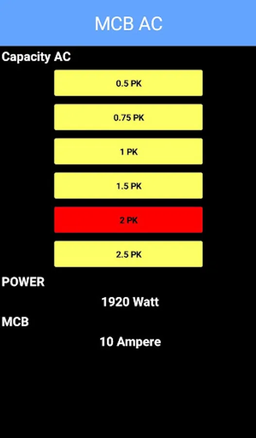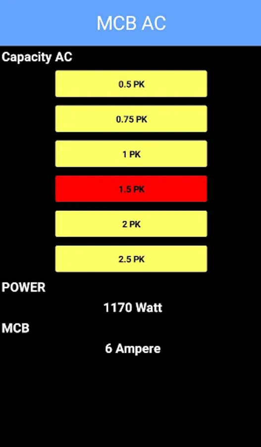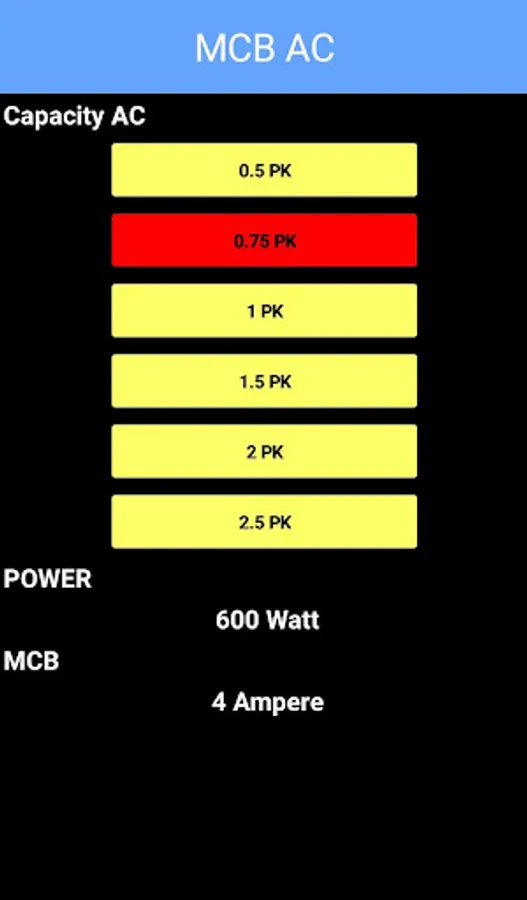 Application for calculating MCB (Mini Circuit Breaker) and Electricity Air Conditioning (AC) based on Air Conditioning (AC) capacity