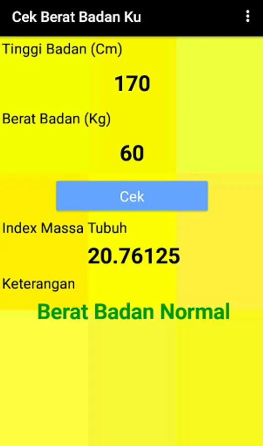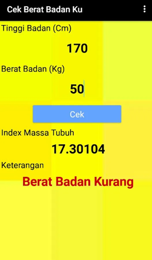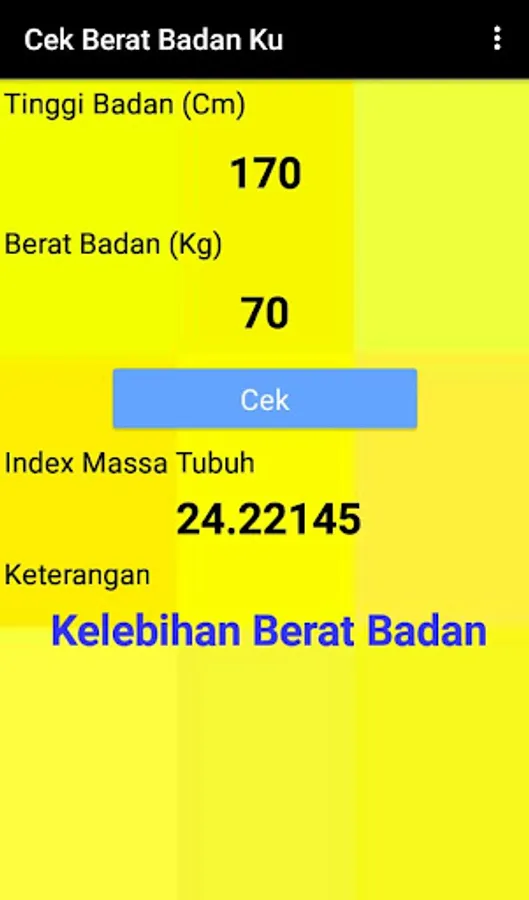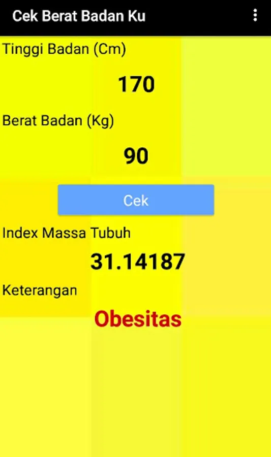 Application to find out the type of body weight accompanied by body mass index value and type information on body weight.
