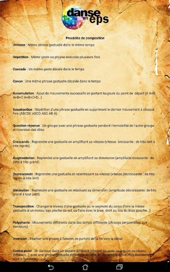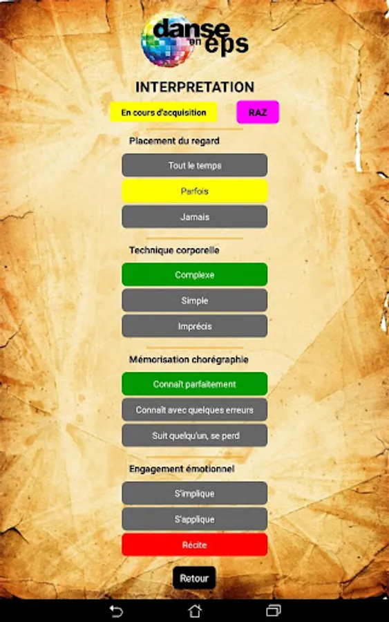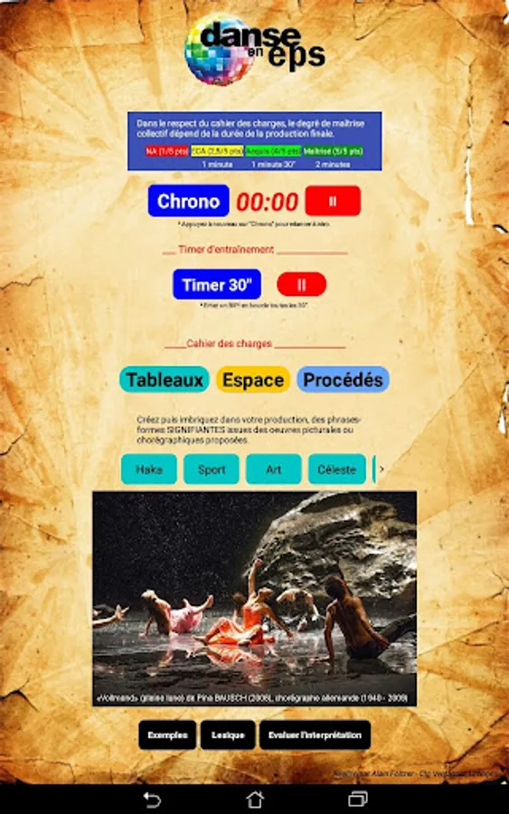 This app is a support tool for students. She proposes a specification for the Danse sequence in relation to the school's EPS educational project. Outside of this context, this application can not have the same educational ambitions.