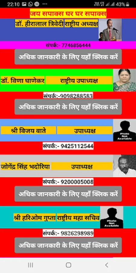 इस application के यूजर्स को सपाक्स से सम्बंधित सभी अधिकारीयों की जानकारी उनके मोबाइल न. के साथ उपलब्ध करवाई जाती है|