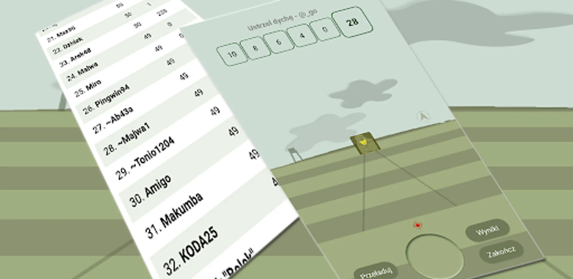 Gracz oddaje pięć strzałów do tarczy. Zdobywając 50 pkt. przejmujesz koronę króla strzelców. Wynik jest widoczny w tabeli.