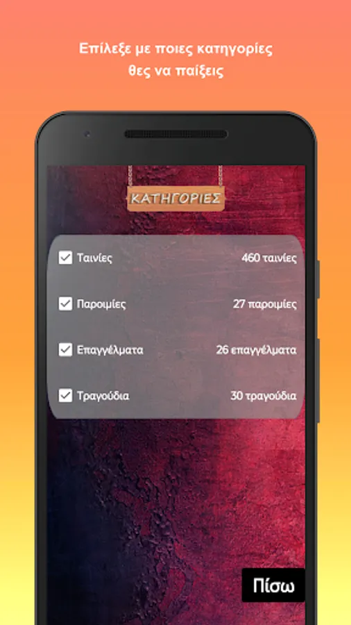 Select which of the four categories you want to play from the "Categories" menu.