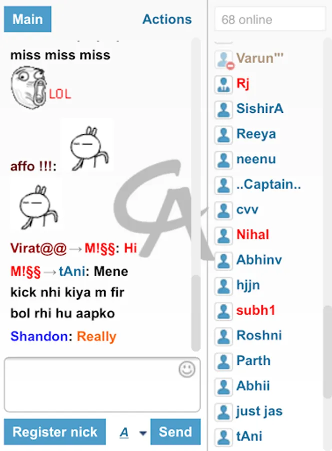 Meritnation chat rooms the number #1 largest and biggest Chat rooms in the Chat World. Here you guys can meet with thousands people of Indian around the world. Online Meritnation chat room offers best free indian And Meritnation Chat Rooms for online meet and Chat with friends . easily and quickly without registration just select any nickname to join Chat room. No signup need for chat with girls and boys online from India. We offers Meritnation Chat Rooms Free to the people for Online Chatting with people in Private Chat Room and also meet and chat with online Strangers for make Friends with them in Meritnation Chat Room. Thousands decent strangers online in Strangers Chat Rooms for online Chat. If you’re searching and interested in online chatting with Indian boys and Girls then join our Meritnation Chat Rooms Online without Registration. Where School And College Students Teens and young girls and boys come 2 chat with friends.Indian chat Rooms Online Provides and divided Online Free Chat Rooms in Sub-categories of Province/States and cities/local for online local and regional users. Chatrooms divided in states as Andhra Pradesh chatroom, Arunachal Pradesh chatroom, Assam chatroom, Bihar chatroom, Chhattisgarh chatroom, Goa chatroom, Gujurat chatroom, Haryana chatroom, Himachal Pradesh chatroom, Jammu & Kashmir chatroom, Jharkhand chatroom, Karnataka chatroom, Kerala chatroom, Madhya Pradesh chatroom, Maharashtra chatroom, Manipur chatroom, Meghalaya chatroom, Mizoram chatroom, Nagaland chatroom, Odisha chatroom, Punjab chatroom, Rajasthan chatroom, Sikkim chatroom, Tamil Nadu chatroom, Telangana chatroom, Tripura chatroom, Uttar Pradesh, Uttarakhand and West Bengal chatroom, these all Indian states Online Chatrooms