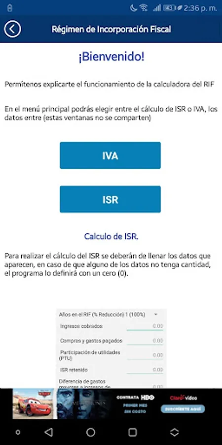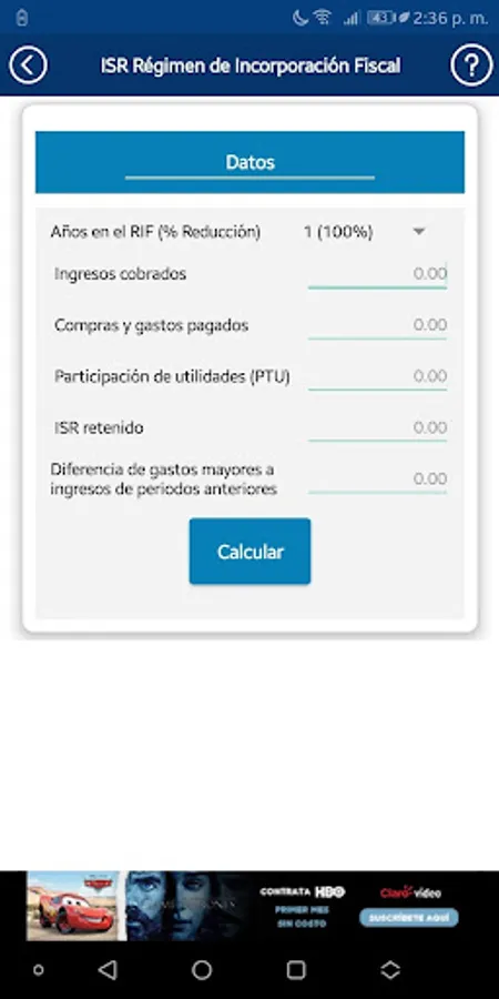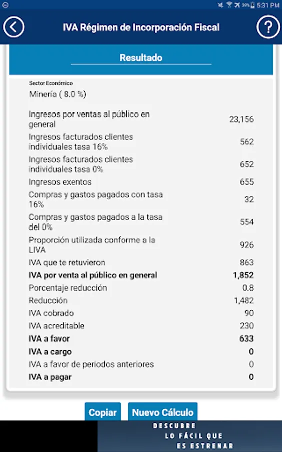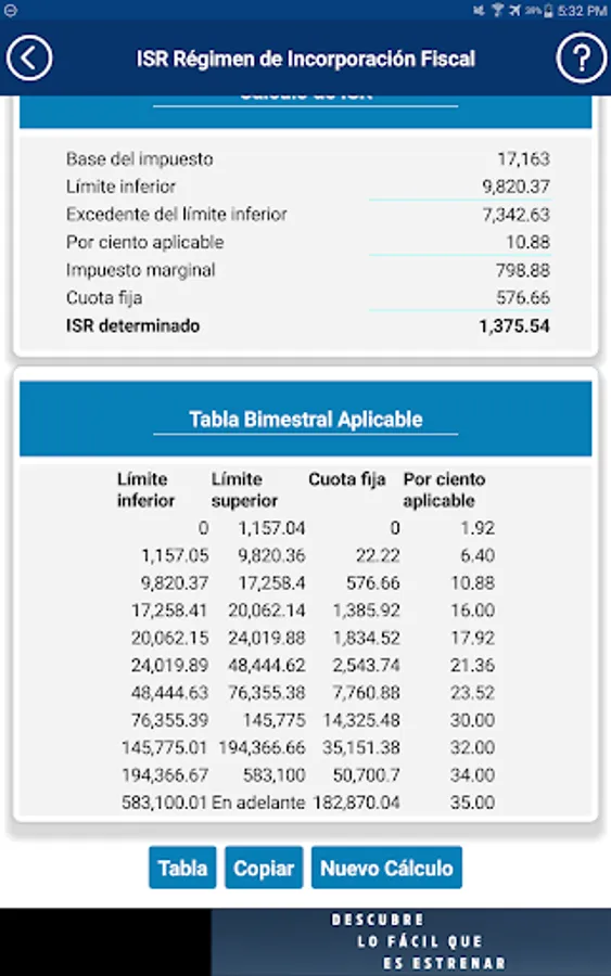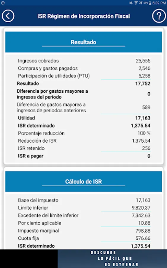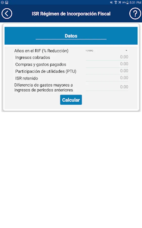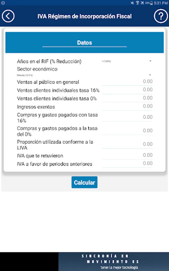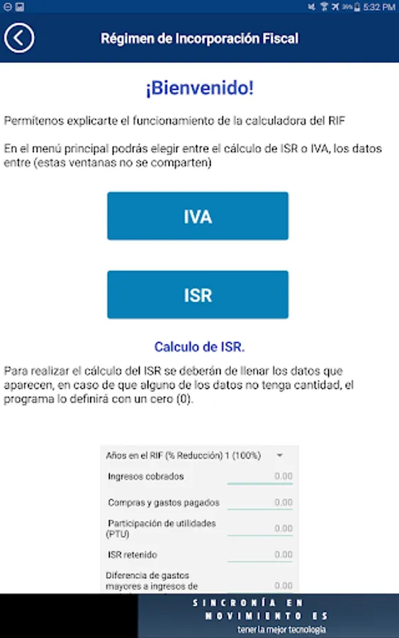 With this app you can perform tax calculations of natural persons registered in the Tax Incorporation Regime (RIF)
