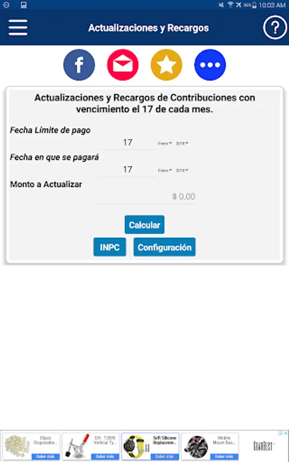 With this app you can calculate the amount of the updates and surcharges generated by making the payment of contributions out of time.