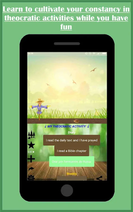 •If you are a Jehovah's Witness and you lack of constancy in preparing your meetings, reading the daily text or praying daily, this App is for you. It will help you to create good habits and be more constant in a funny way.