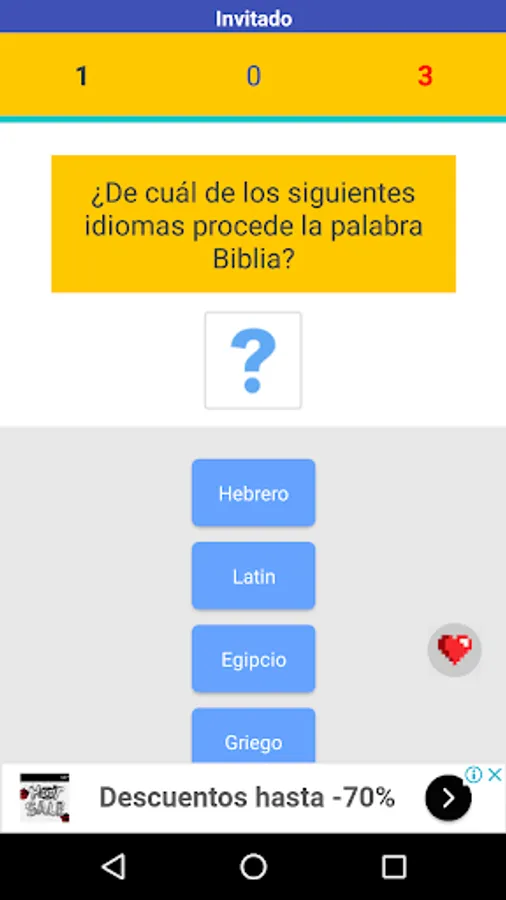Mode with time: This mode gives you 1 minute to answer 10 questions, if the time is exceeded you lose your chance.