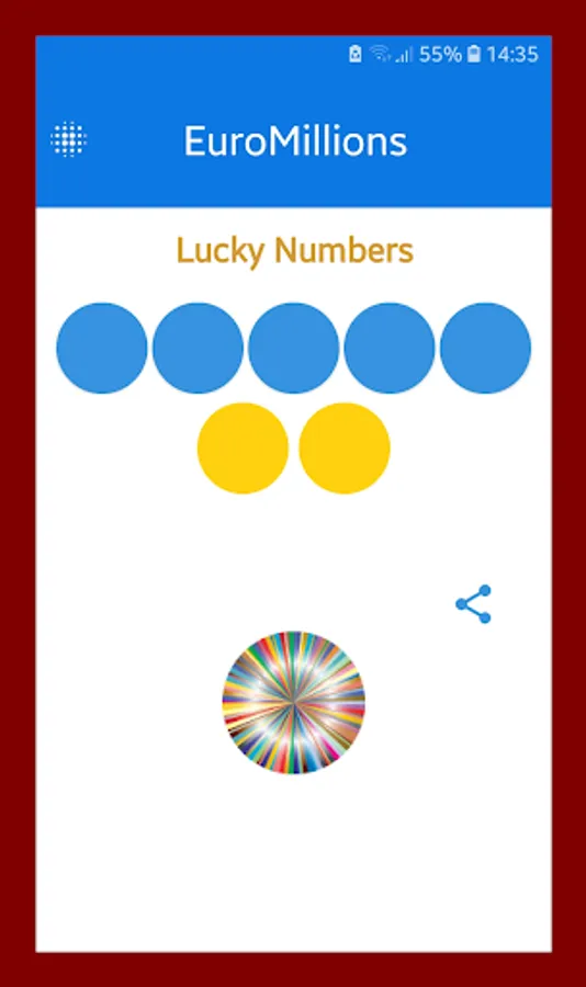 This is a very convenient and easy to use application, without unnecessary options and settings. Just click on the round button with multi-colored stripes and lucky combination of numbers (5 + 2) will appear on the screen of your smartphone.
