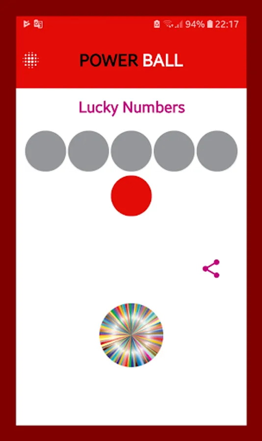 This is a very convenient and easy to use application, without unnecessary options and settings. Just click on the round button with multi-colored stripes and lucky combination of numbers (5 + 1) will appear on the screen of your smartphone.
