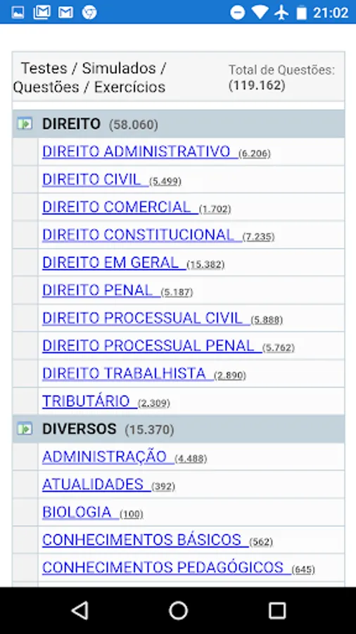 Subject matter: Constitutional Law, Criminal Law, Portuguese, Criminal Law, Human Rights, Information Technology, History, People Management, Criminal Law, Mathematics, State Legislation, Computer Architecture, Administrative Law, Chemistry, Programming, General Knowledge, Logic, Geography, Nursing, Physics, General Administration, Federal Legislation, Labor Law, Tax Law, Financial and Budgetary Administration, Civil Law, English, Sociology, Material Resources Management, Philosophy, Public International Law, Information Security, Administration Among others.