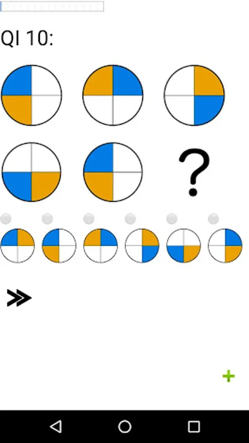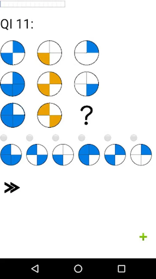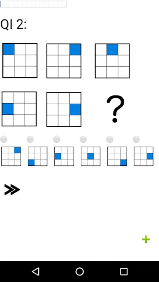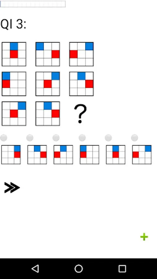a great application to test intelligence and train the mind to stay alert and provide a reasoning for decision making, pay close attention as the tests and behave it starts easy then becomes difficult and returns to be easy as it checks various aspects of intelligence , this test aims to verify the intelligence factor G that is composed of several modules, the application is not a game, but an educational application because it is intended to train the brain to become smarter, not only test the intelligence is make the mind think in other ways, there is a single standard parra resolution, but several different patterns, get smarter after using this application.