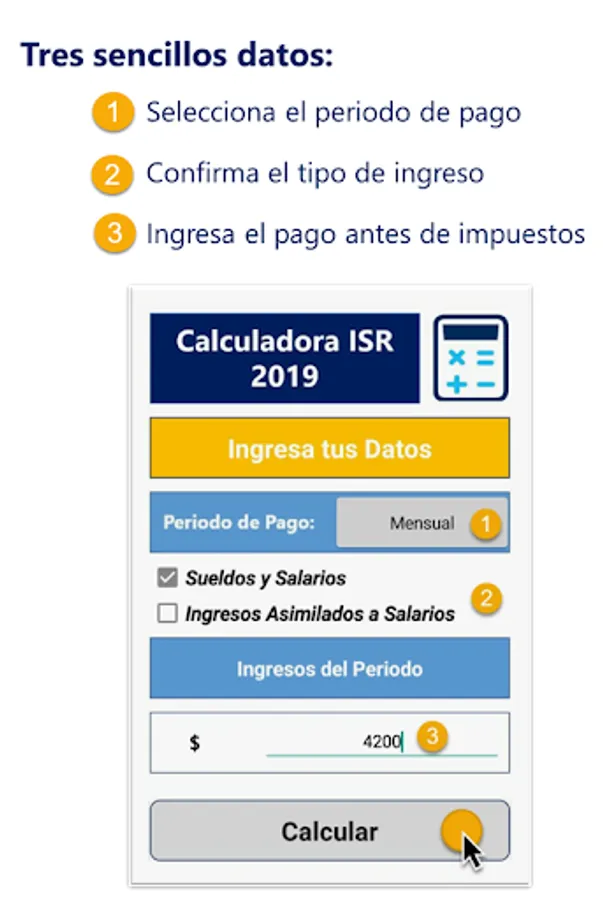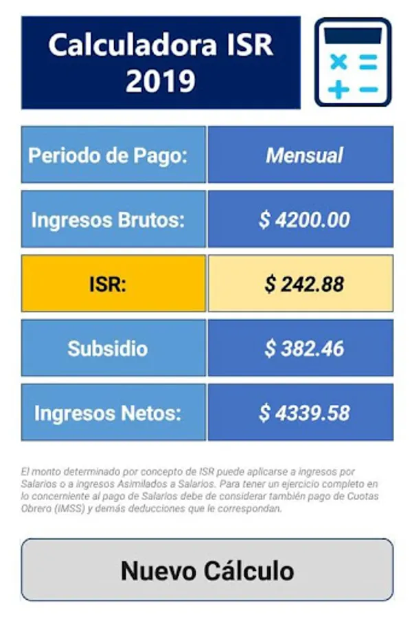 Tool that serves as support to calculate the ISR corresponding to the fiscal regime of Salaries and Salaries, as well as for income Assimilated to Salaries. It is useful to determine the ISR salaried or independent workers. Updated confirm to the fiscal miscellany of 2019.