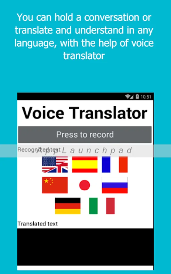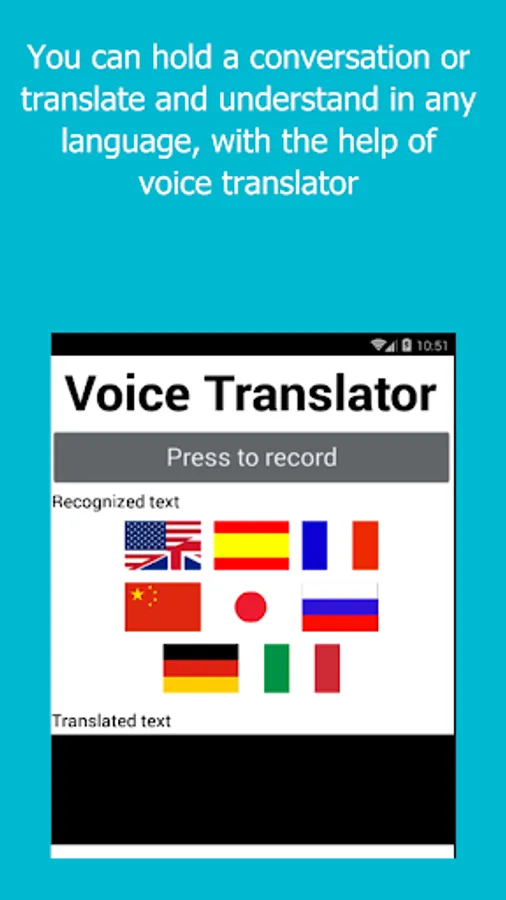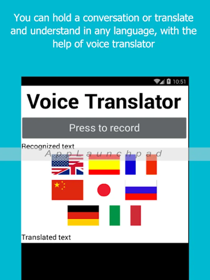 Have a conversation in a another language for free! You can translate and understand 7 languages with the help of our exclusive voice translator.
