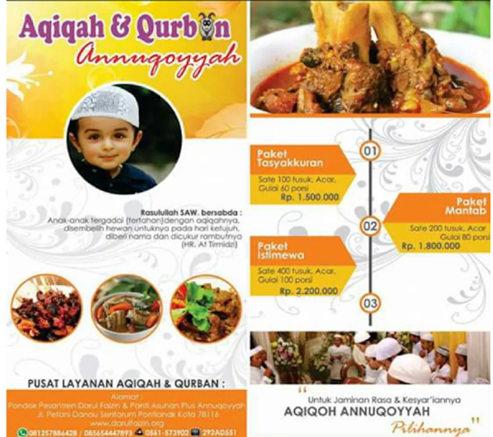 Ready to serve aqiqah & deliver to West Kalimantan. Serve orders every day with guaranteed implementation in accordance with Islamic Shari'a, selected menus, certified, and price options that are suitable for consumers.