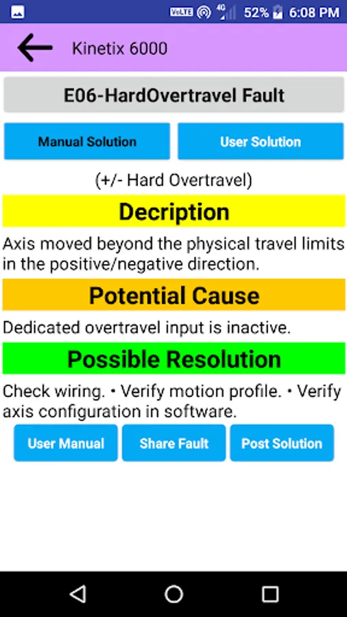 Best feature in addition to manual solution, User own solution can be posted in this app for specified faults and User can like /unlike the solutions.