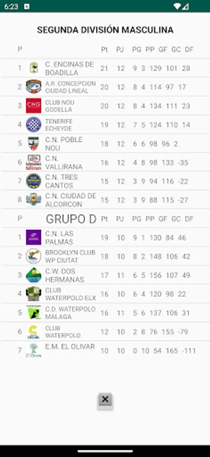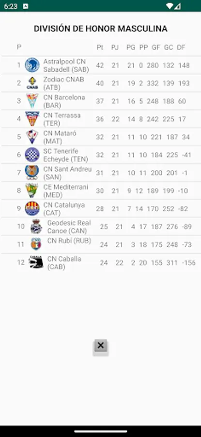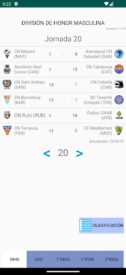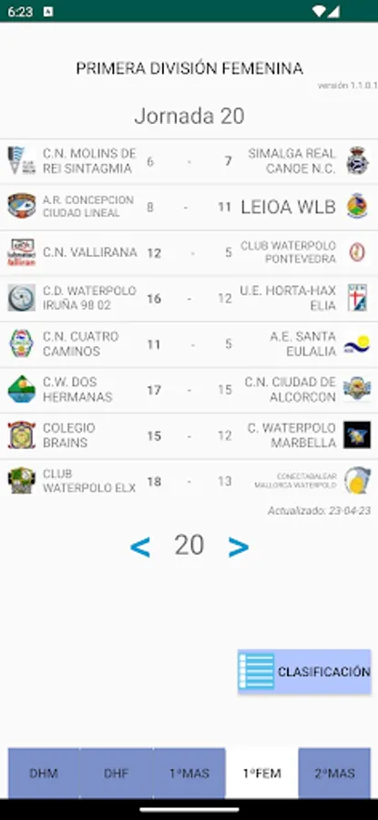 The application offers the updated results of the national leagues (male and female) of Spain.