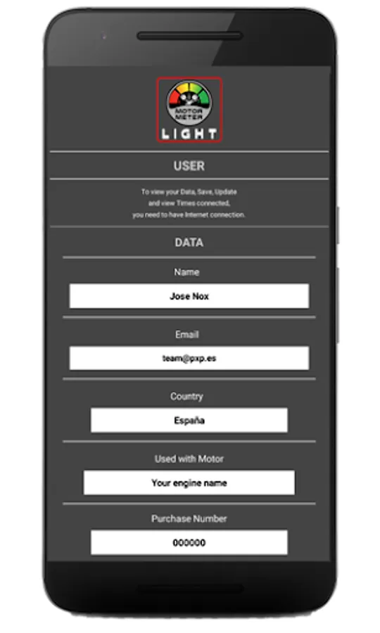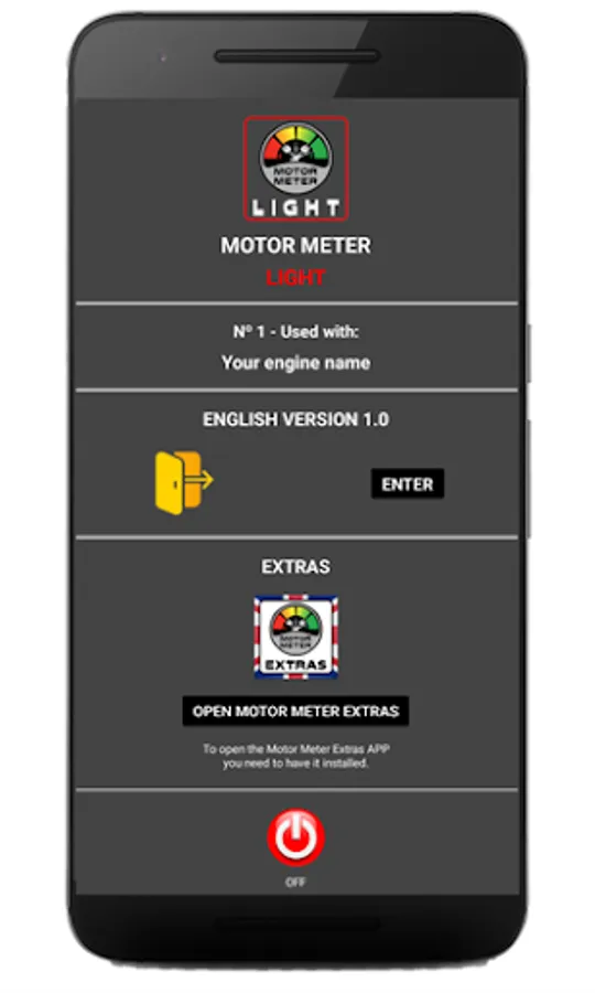 The Motor Meter Light is an application for mobile and tablet (on Android) that with Sensors installed in our Engine and connected by Bluetooth with the control unit, will indicate Data of: EGT (Temperature Exhaust Gases), CHT (Temperature of Culata - Spark plug), H2O ( Accura Temperature - Coolant), RPM (Revolutions per Minute), Current Speed, Average Speed, Total Distances, Distances In Straight Line, Positive Time (Time We Take), Heights, Accumulated Heights, G-Force Meter, Sound, Coordinates and more Extra Data.