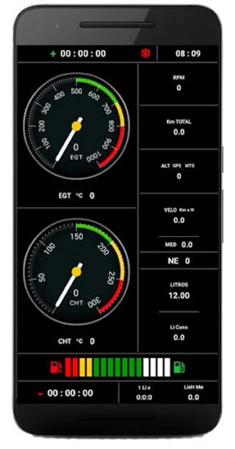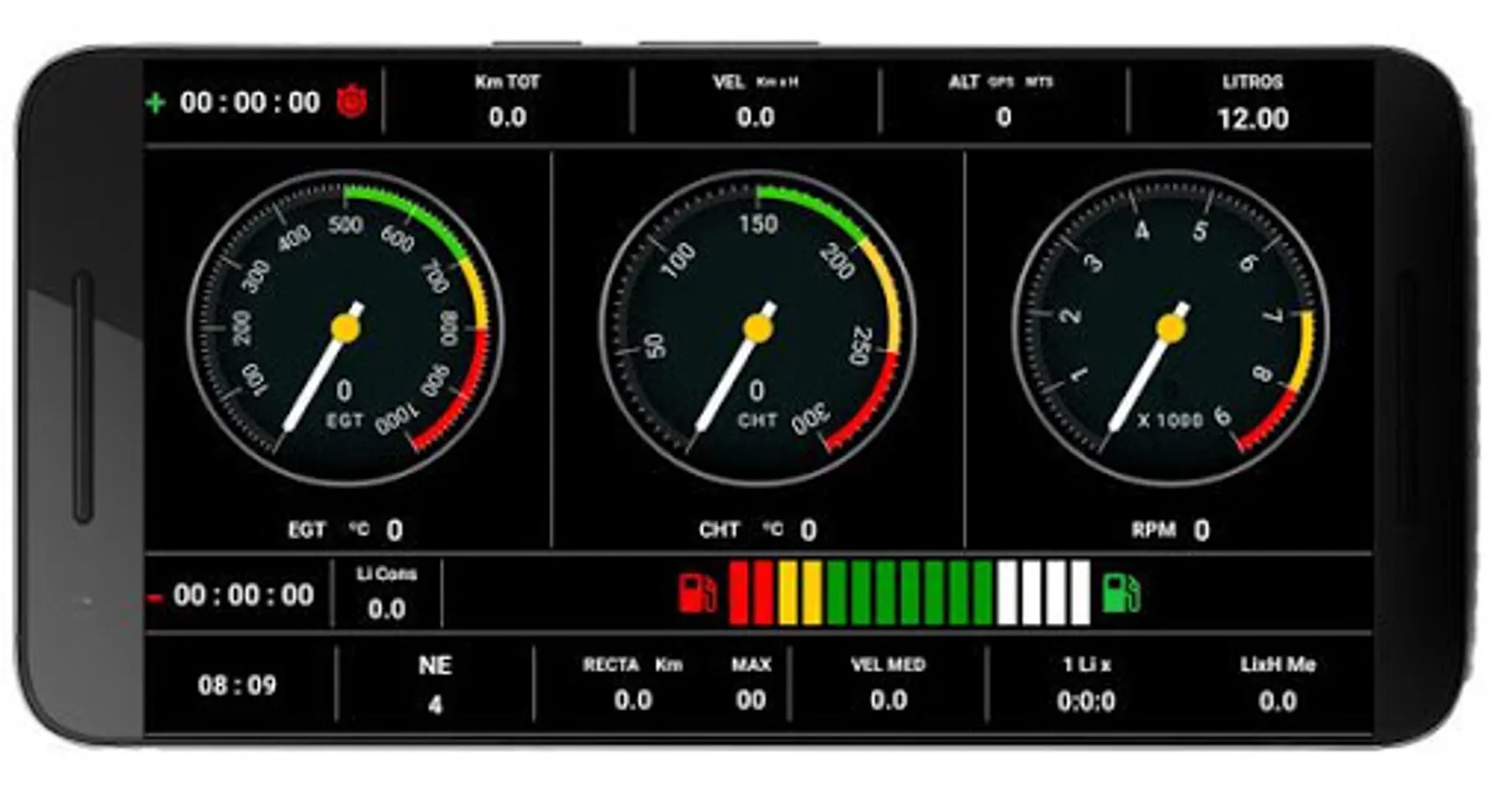 The Motor Meter is an application for mobile phones and tablets (on Android) that with some sensors installed in our Motor and connected by Bluetooth with the Switchboard, will indicate all the most important Data such as Motor Temperatures (EGT, CHT and H2O) , Fuel Marker, Stopwatch, Speeds, Distances, Heights, Maps and much more.