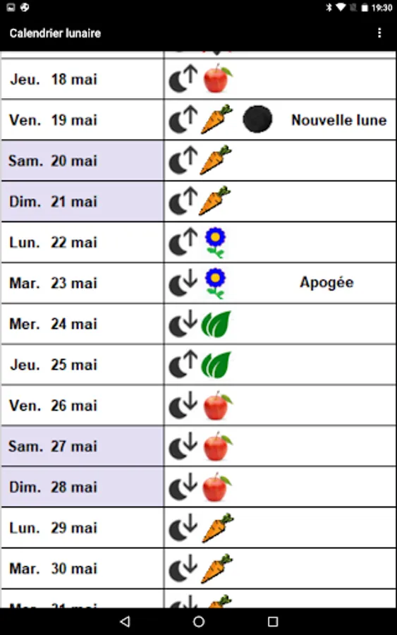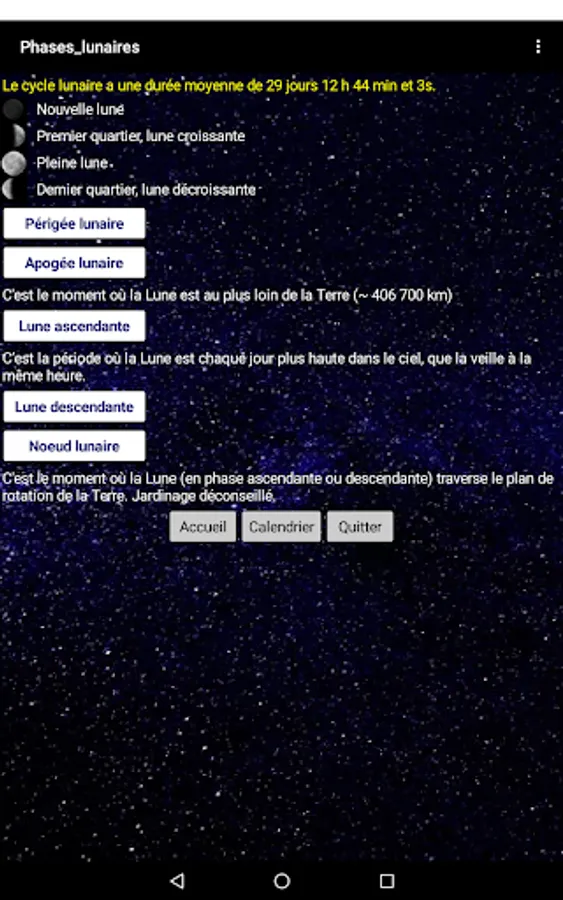 Explanation of the different lunar phases, apogee, perigee, lunar node, waxing and waning, ascending and descending moon, influence on gardening.